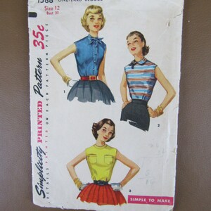 Vintage 1950s Simplicity Pattern 2510 Misses One Yard Blouse Etsy